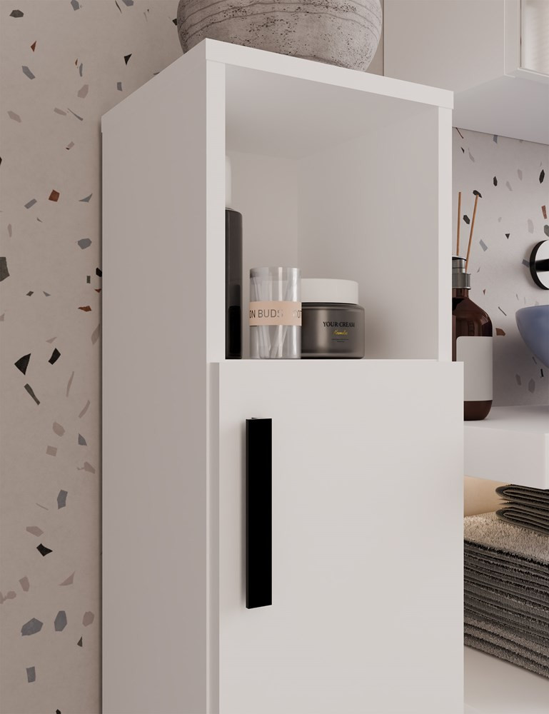 Aldabra Alvo 1D álló fürdőszoba szekrény - szekrény 1 ajtóval, 4 polccal, fehér