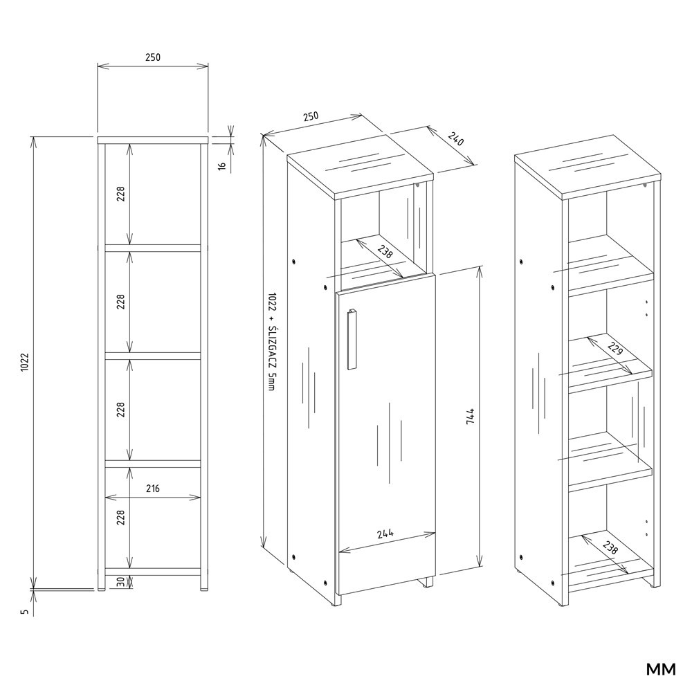 - Bútor szélessége: 25 cm