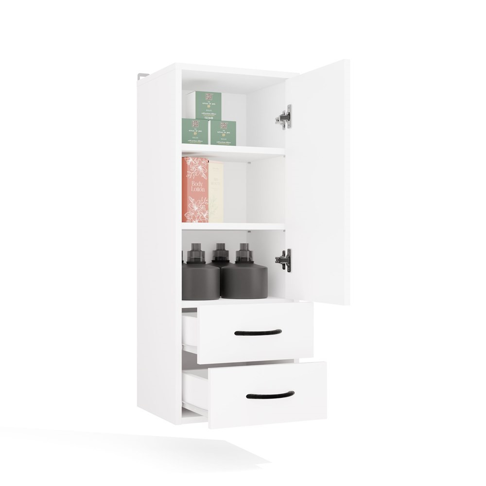 Aldabra Nina W1D2S függesztett fürdőszobai szekrény, 1 ajtó, 2 fiók, 3 polc, fehér