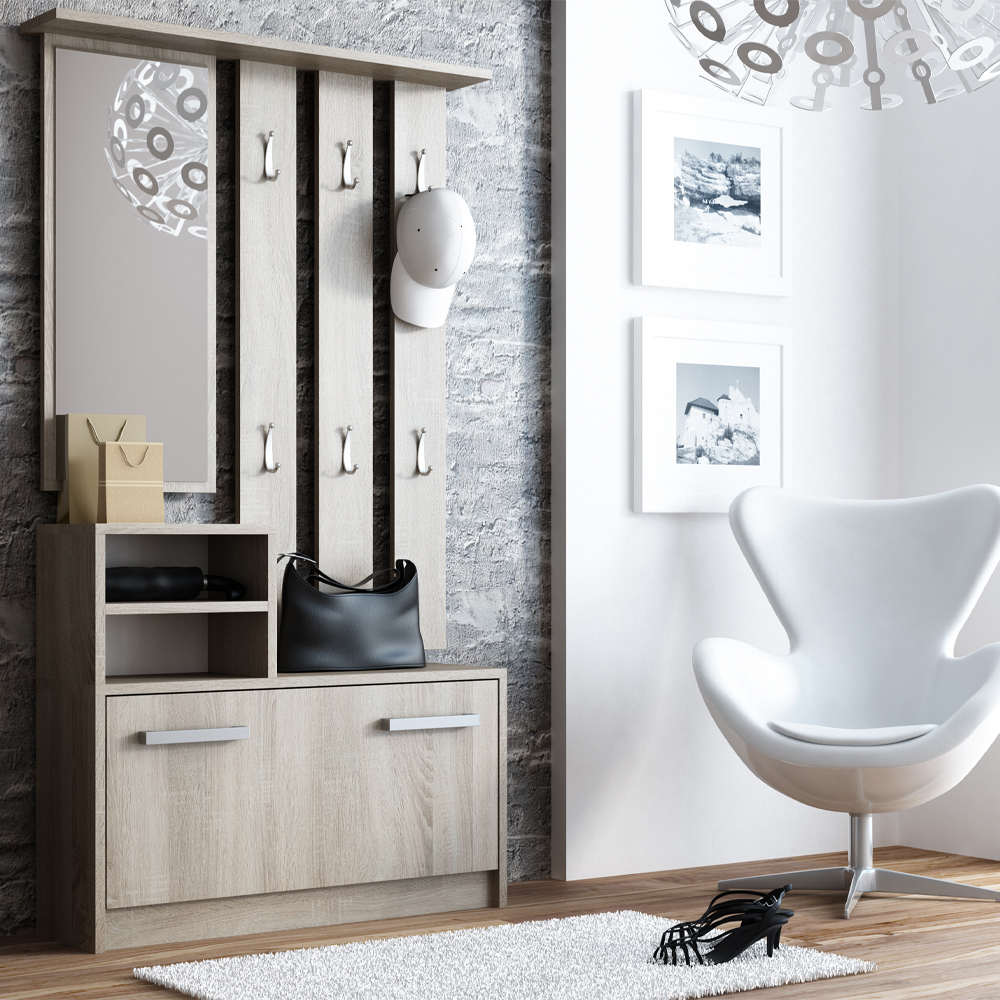 Az előszobafal minden lakás nélkülözhetetlen eleme. A kabátoknak és a cipőknek megfelelő és elegendő helyet biztosít. Gondos kidolgozása miatt tökéletes kiegészítő eleme lehet az előszobának. A bútorok felületét puha ruhával kell megtisztítani. Kerüld az erős vegyszerek használatát!